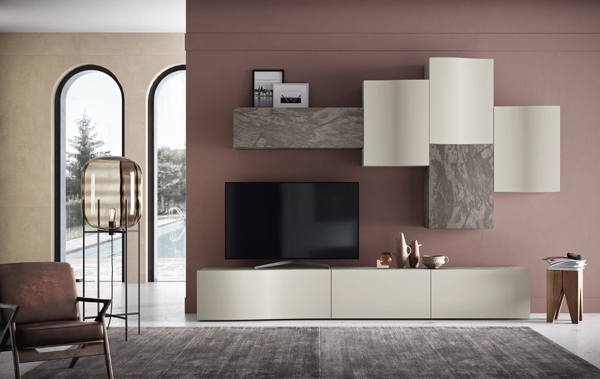 Vuoi progettare un soggiorno dinamico e operativo? Ti presentiamo la parete attrezzata Soggiorno 05-2 Corso 11 dalle linee decise moderne.
