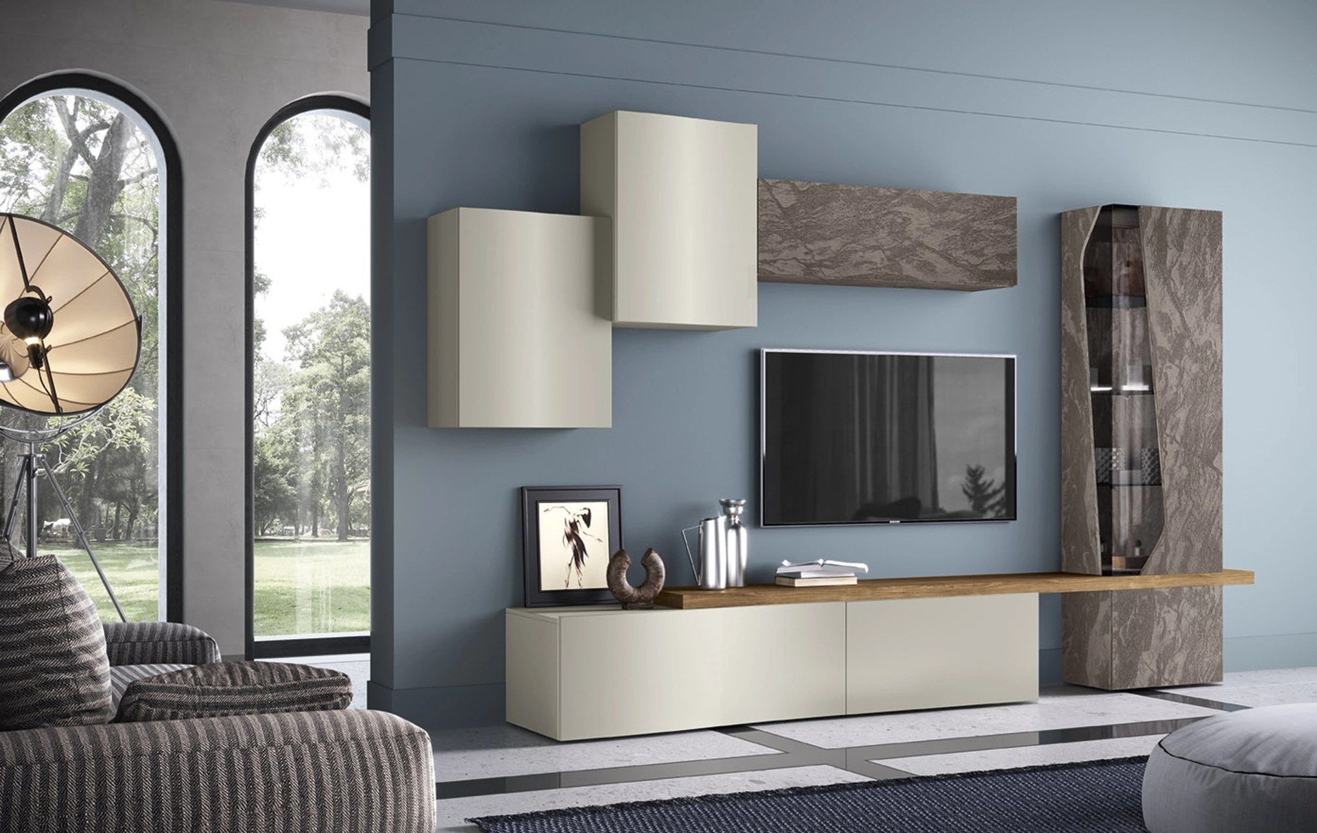 Questa soluzione rappresenta tutta l'eccellenza che il brand garantisce grazie a pluriennale professionalità e grande passione nel settore dell'arredo e del design. Un po’ librerie, un po’ contenitori ed espositori: le Pareti Attrezzate sono ideali per arredare un luogo dinamico e operativo. Anche in un living non generoso, questo tipo di arredo riesce a organizzare al meglio gli spazi sfruttando bene ogni angolo e assicurando componibilità personalizzabile tipica delle soluzioni moderne. La Parete Attrezzata Soggiorno 01C-1 di Corso 11 nella fotografia, con finitura in laccato opaco, risolve le più personali problematiche abitative di spazio e stile senza rinunciare alla ricerca estetica.