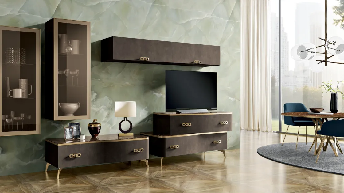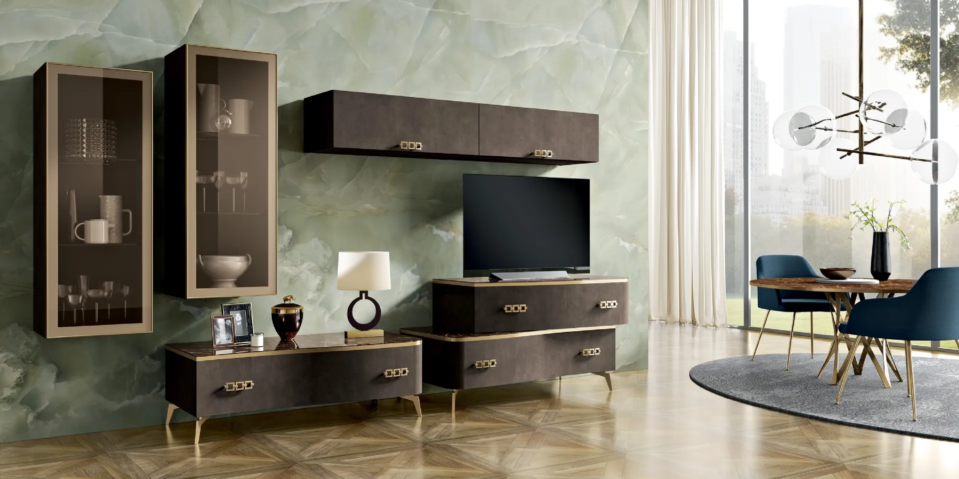 Vuoi progettare un living pratico e operativo? Ti presentiamo la parete attrezzata Deluxe P32 Gold Spar dalle linee decise moderne.