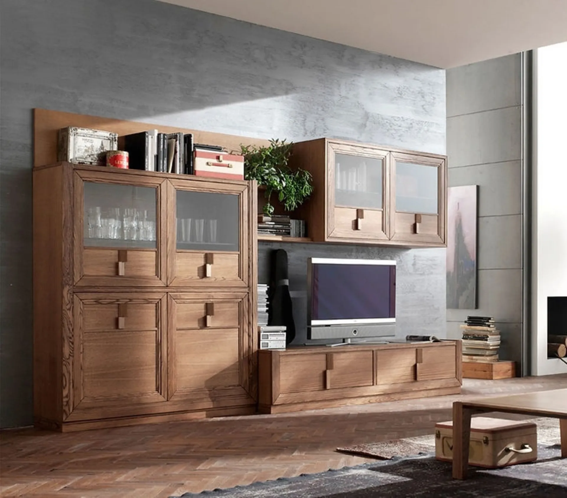 Vuoi progettare un living pratico e operativo? Ti offriamo la parete attrezzata Tea N in finitura Tabacco Fasolin dalle linee decise moderne.