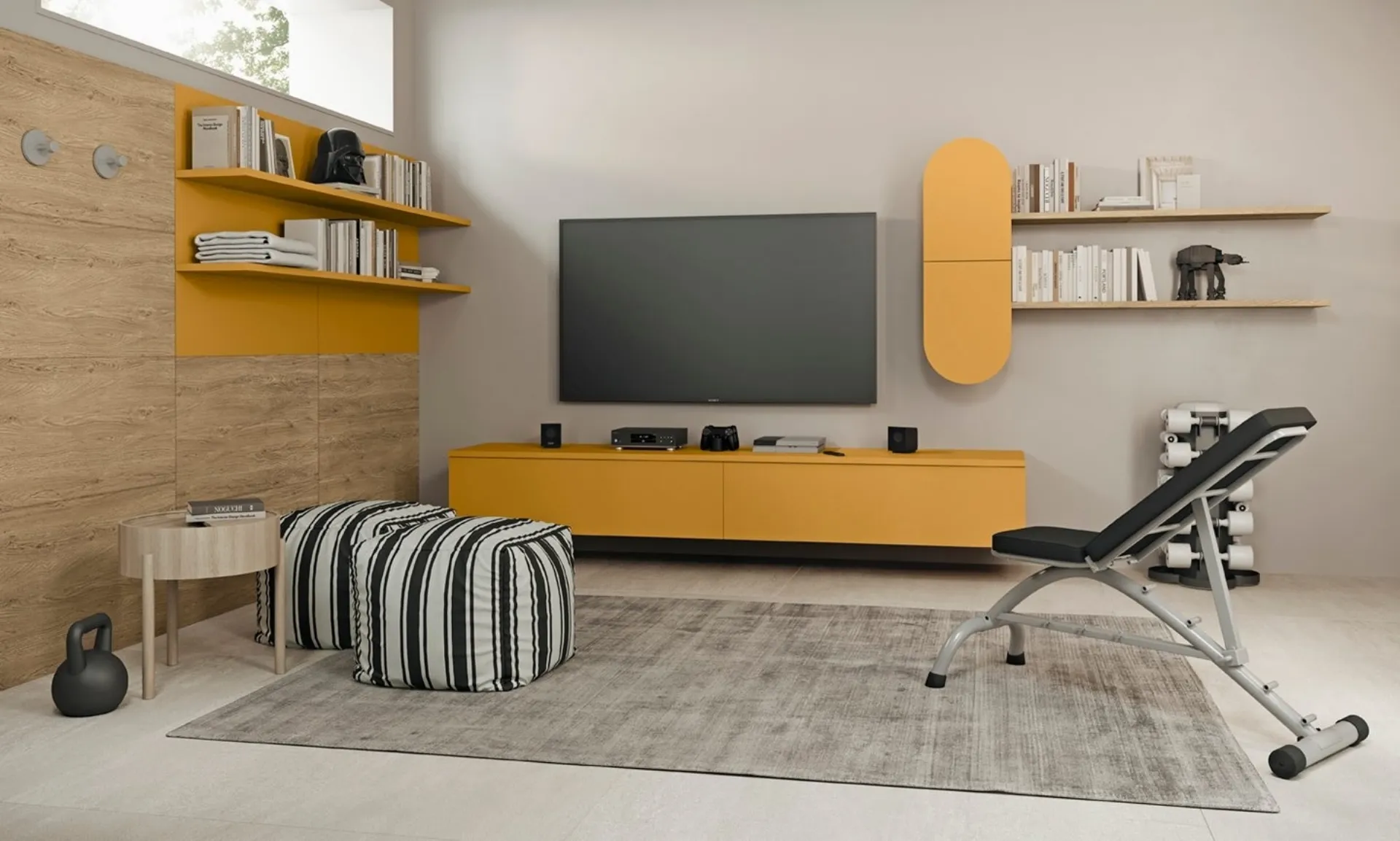 Se desideri ultimare un soggiorno pratico e operativo dalle linee moderne, ecco a te la parete attrezzata Volo A001B Colombini Casa.