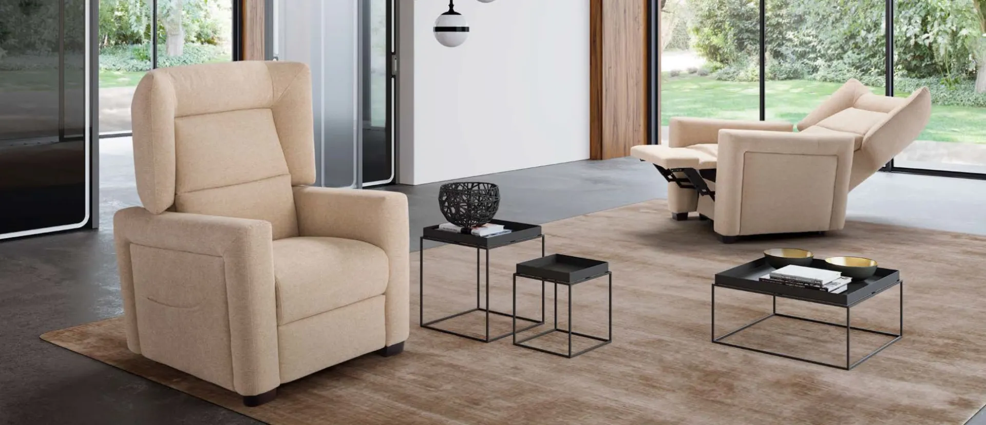 Le Poltrone relax sono un elemento veramente essenziale in varie stanze, dalla soggiorno alla zona del riposo, ambienti da decorare con cura. Scopri un'infinità di imbottiti e potrai creare gli spazi che hai sempre desiderato. Gli imbottiti con movimento relax o alzapersona sono moduli d’arredo attorno ai quali trascorrere momenti di riposo e di socializzazione. Spaziorelax, specialista nella produzione di Poltrone relax, ha ideato per il modello nell'immagine un ricercato ed elegante rivestimento in tessuto.