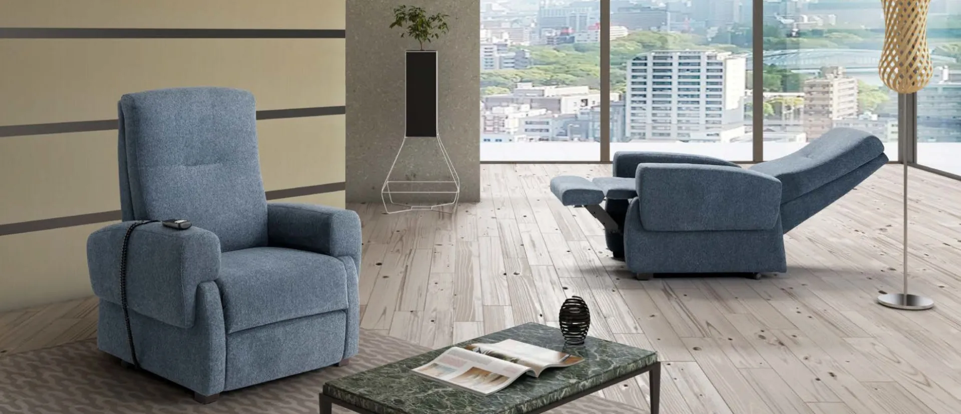 Gli imbottiti con movimento relax o alzapersona sono elementi d’arredo attorno ai quali passare momenti di riposo e di convivialità. Spaziorelax, leader nella produzione di Poltrone relax, ha creato per il modello in foto un elegante e raffinato rivestimento in tessuto. Scopri un'ampia gamma di imbottiti e potrai creare gli spazi che hai sempre desiderato. Le Poltrone relax sono un elemento veramente essenziale in diverse stanze, dalla soggiorno alla camera da letto, ambienti da organizzare con attenzione.