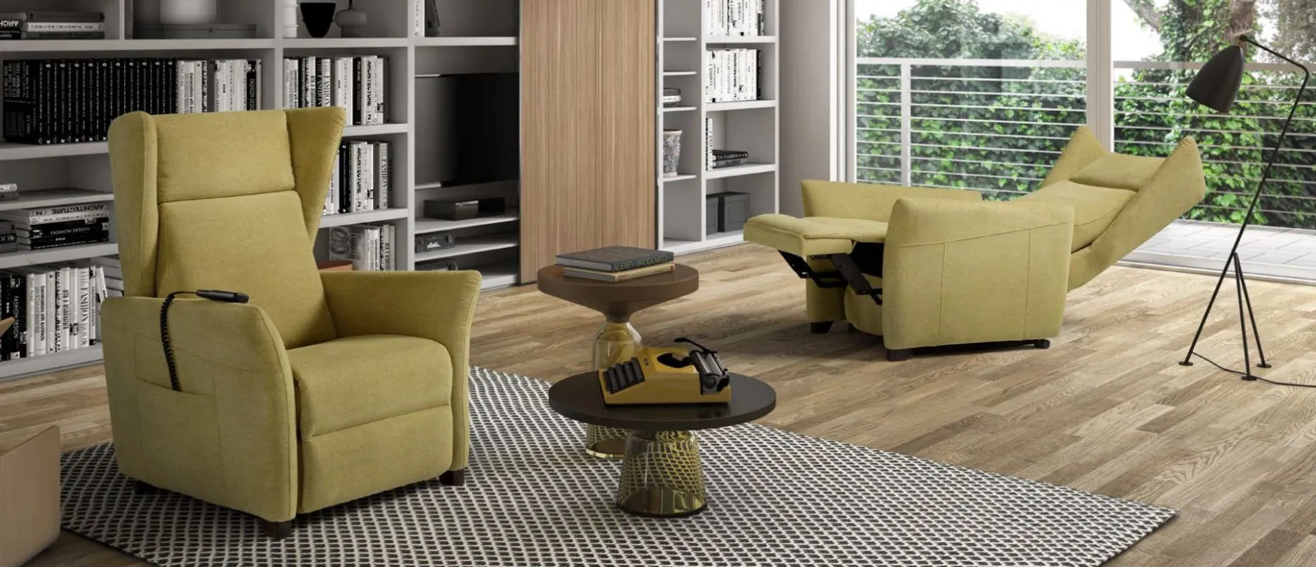 Gli imbottiti con movimento relax o alzapersona sono elementi d’arredo attorno ai quali goderti momenti di relax e di convivialità. Le Poltrone relax sono un elemento veramente essenziale in differenti stanze, dalla zona living alla zona del riposo, ambienti da decorare con attenzione. Spaziorelax, specialista nella produzione di Poltrone relax, ha creato per il modello in foto un elegante e sofisticato rivestimento in tessuto. Scopri una grande varietà di imbottiti e potrai creare gli spazi che hai sempre sognato.