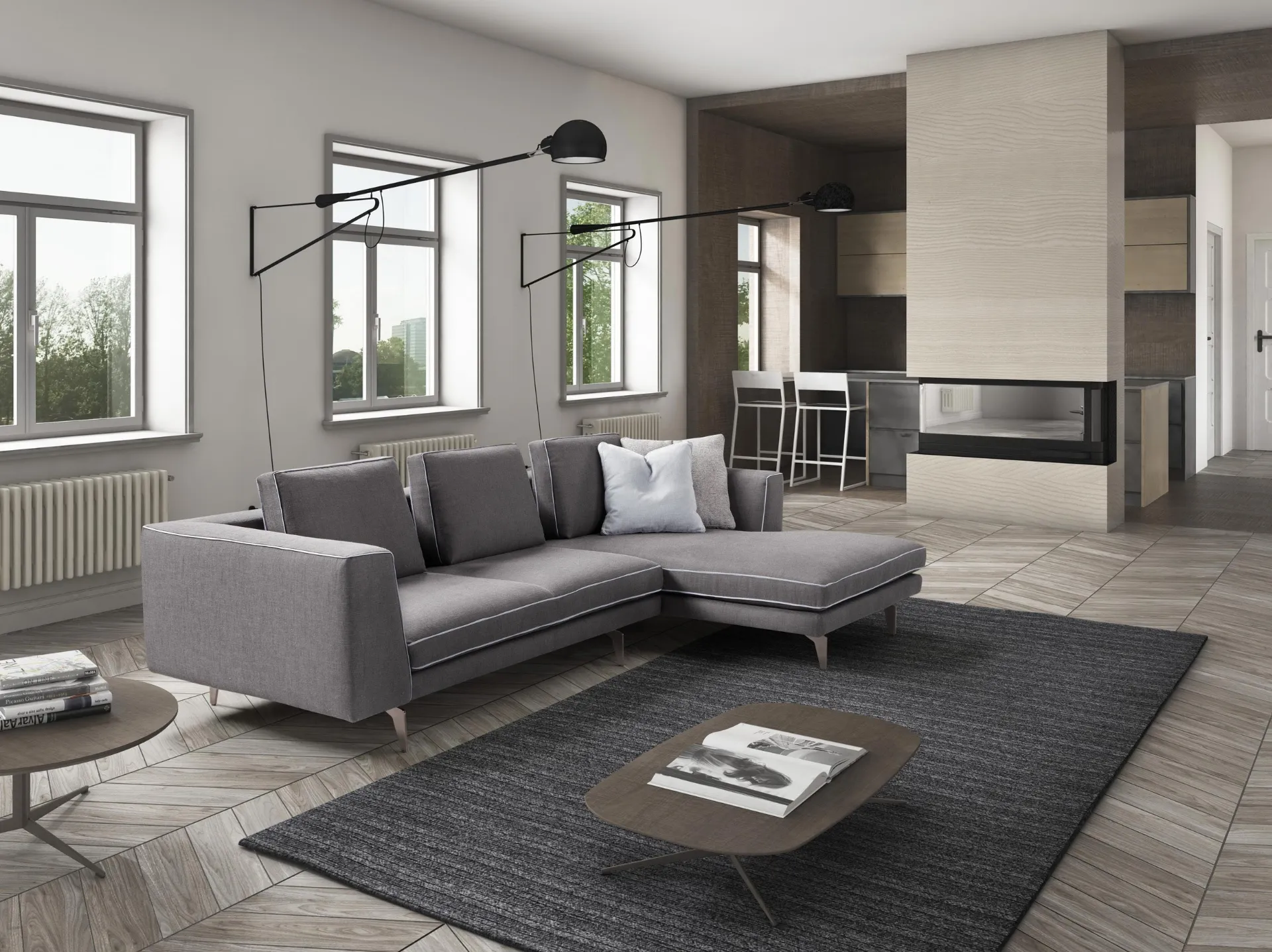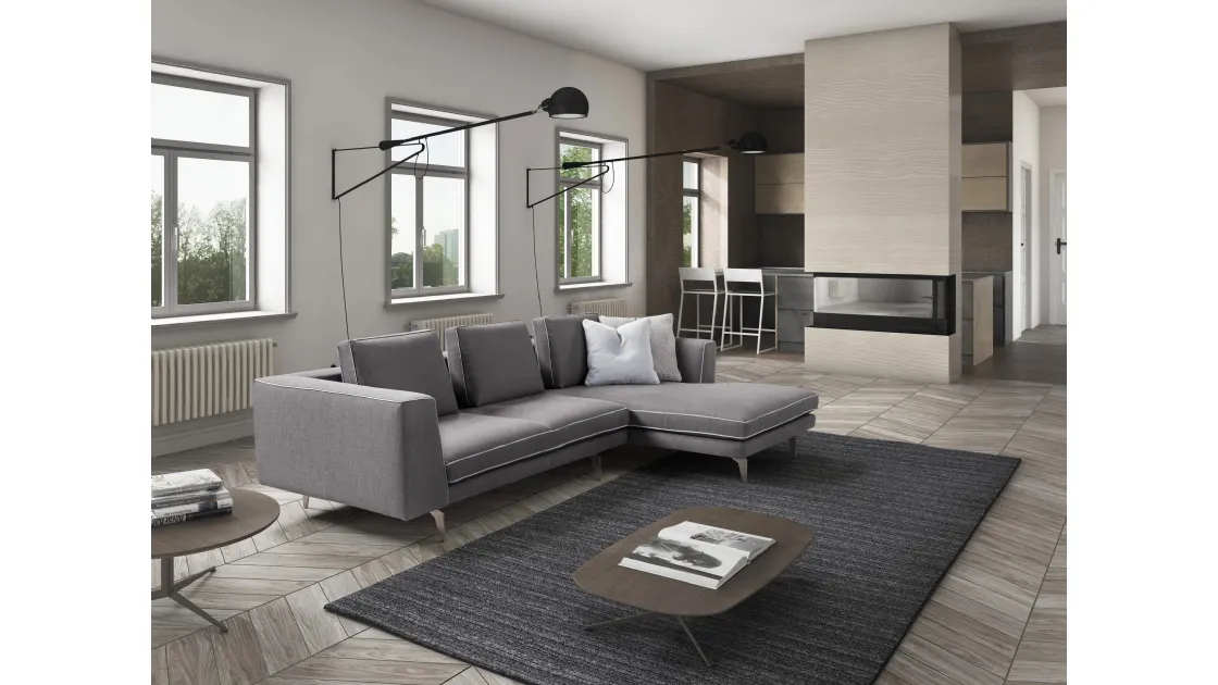 Con salotti e divani con penisola di Musa Italia come il modello Kamy in tessuto, potrai completare il tuo concept d'arredo.