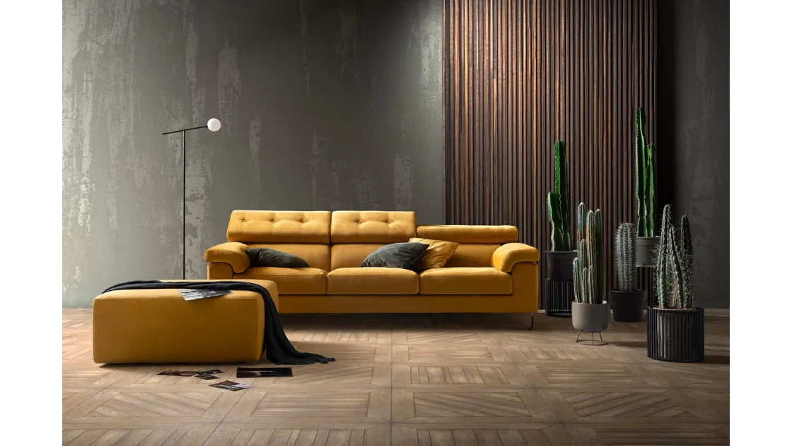 Salotti e divani lineari Samoa: ti offriamo il modello Step Special in tessuto per valorizzare la zona giorno.
