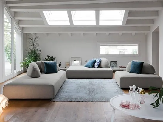 Se vuoi divani per salotti moderni, clicca e leggi di più sul modello Modula in tessuto dell'azienda Max Divani.