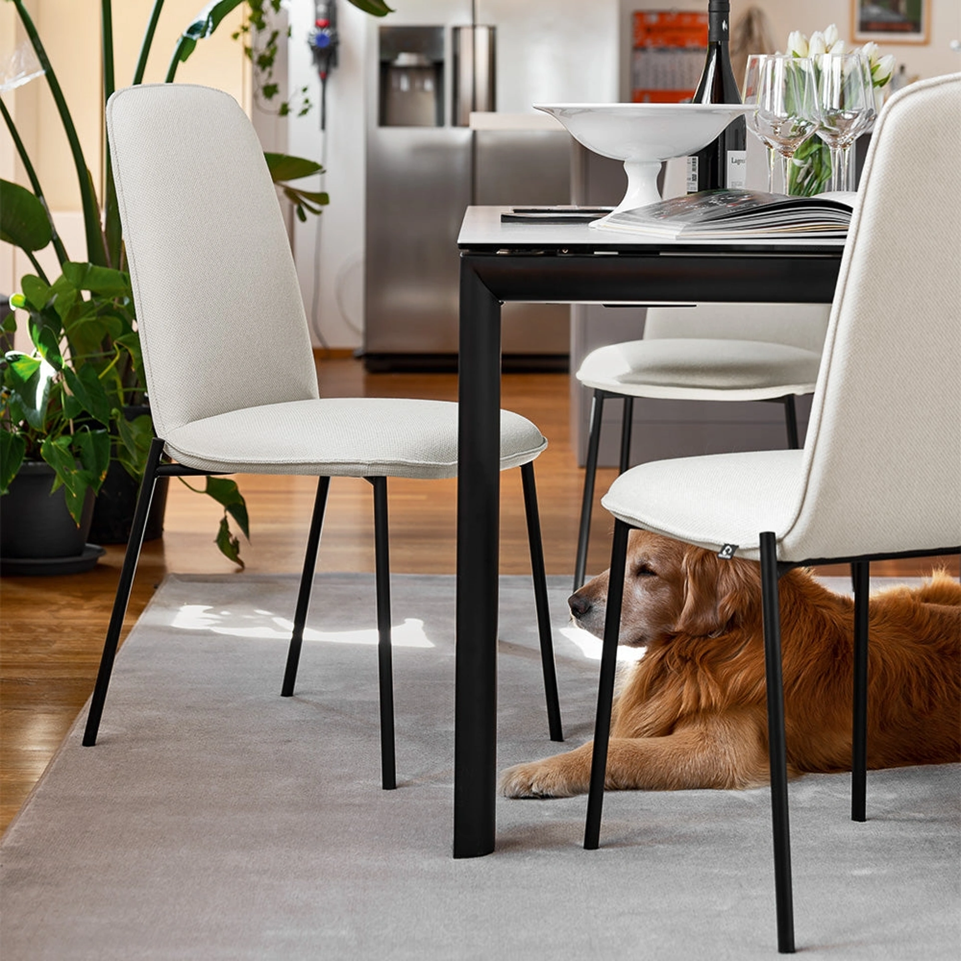 Una ricca gamma di mobili ed elementi accessori ti attende nel nostro punto vendita, dove potrai trovare le Sedie fisse in tessuto dei migliori brand. Se vuoi completare ambientazioni moderne, il modello presente in foto è la scelta ideale per un locale di questo stile. Con questa soluzione confortevole, ergonomica e esteticamente gradevole potrai completare il tuo concept d'arredo e completare la stanza dove si sta in compagnia con familiari e amici. La zona cucina e la zona pranzo non saranno veramente complete senza le giuste Sedie, da abbinare al resto dell'arredo e allo stile della tua abitazione. Dare un'occhiata alle nostre soluzioni in tessuto ti consentirà di trovare il modello da pranzo che hai sempre voluto.