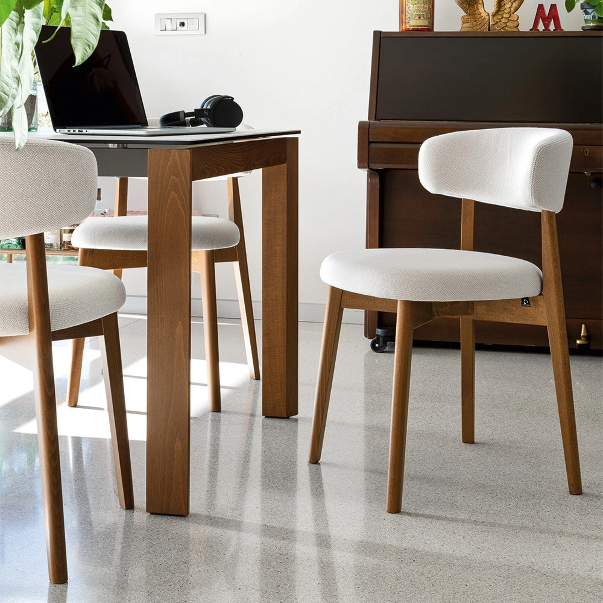 Nel living o nella cucina, le Sedie sono pezzi di arredo immancabili: valorizzano lo stile dell'ambiente e rispondono a una funzione imprescindibile. Sedia in tessuto imbottito Talks di Connubia: questo modello andrà a completare spazi di ogni tipo, in particolar modo atmosfere moderne. Se vuoi una sedia in tessuto per impreziosire l’atmosfera di casa, scopri di più sul modello nell'immagine e trova un tavolo abbinato. Il living e la cucina non sono davvero accoglienti e confortevoli se arredati con le Sedie sbagliate, ecco perché occorre che siano abbinate al resto degli arredi e alle misure della stanza.