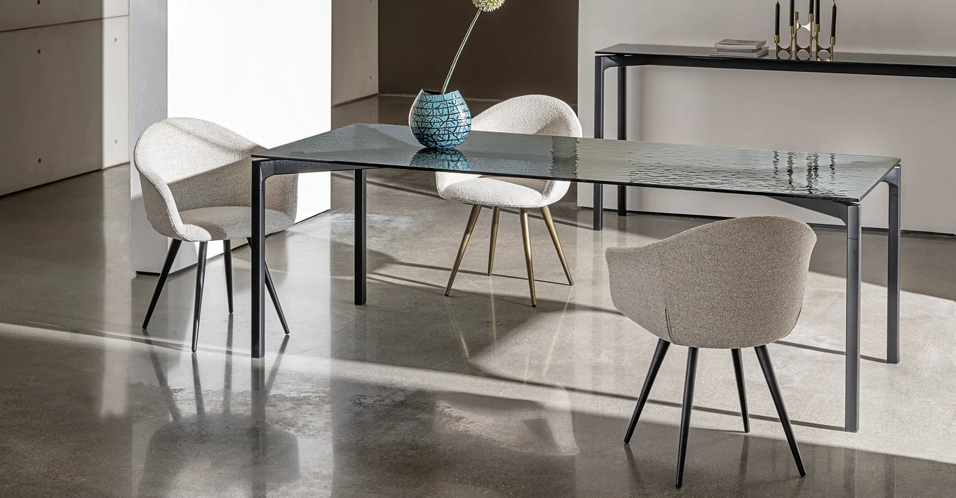Se sei alla ricerca di tavoli moderni da pranzo, scopri i modelli fissi di Sovet: clicca e scopri il modello Bone Glass in vetro.
