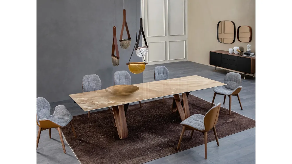 Il noto e rinomato marchio Tonin Casa, specialista nella produzione di mobili in gres, ha scelto per la sua collezione una grande varietà di materiali, linee e tonalità. Se desideri un tavolo da pranzo di grande design, contattaci e ricevi informazioni e preventivi sul modello presente in foto. Un modello come quello nell'immagine, in abbinamento alle giuste sedie, saprà valorizzare l'atmosfera delle stanze domestiche dedicate in assoluto alla socializzazione. Tavolo allungabile Butterfly di Tonin Casa: realizzato in materiali pregiati è caratterizzato dalle linee decise del top e da un basamento ricercato ed elegante. Ideali per dare vita a degli accostamenti unici con sedie e complementi design, i Tavoli allungabili del brand sono soluzioni tra le più esclusive in commercio, ideali per il living e la cucina.