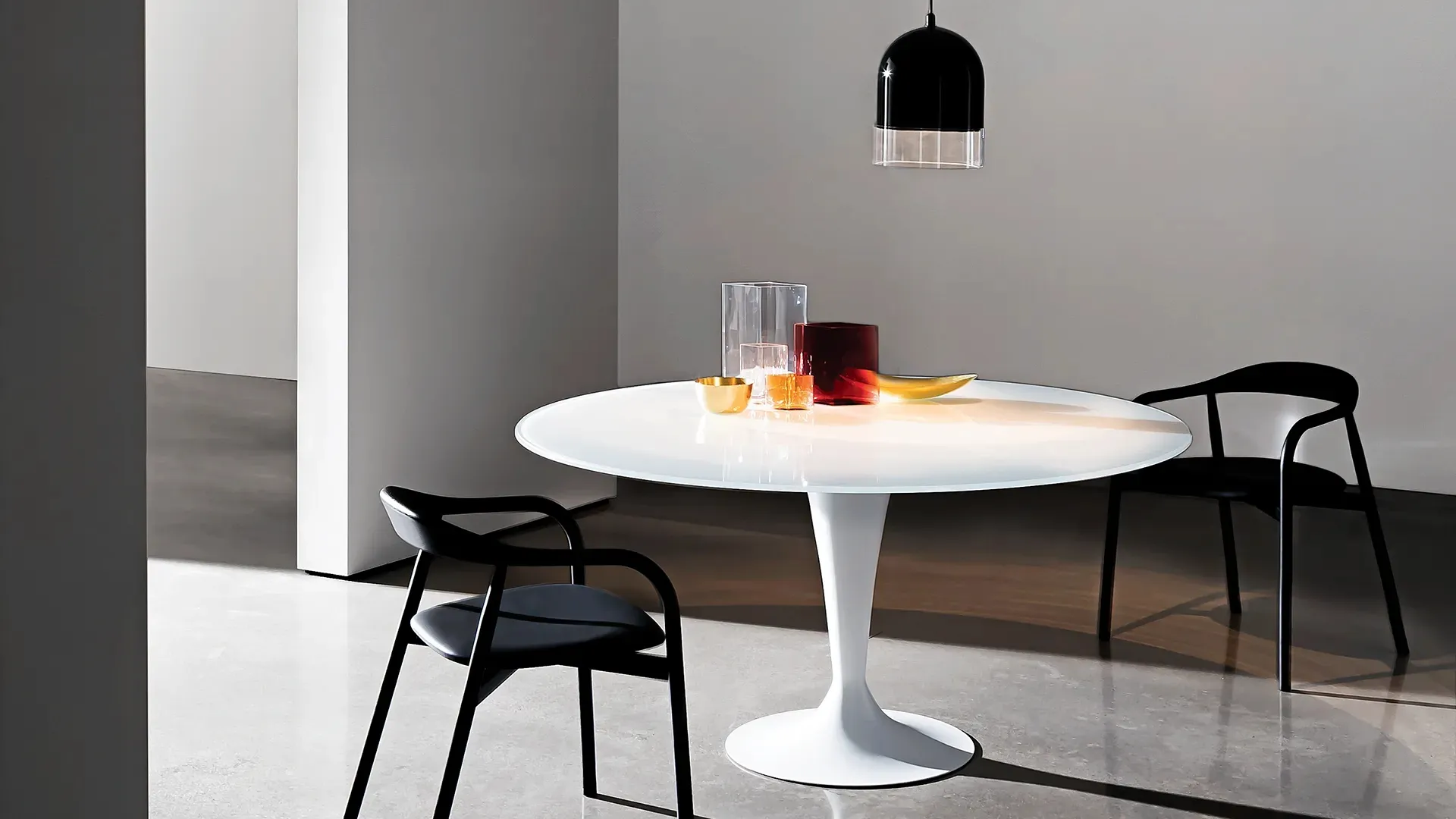 Ideali per dare vita a degli accostamenti unici con sedute e complementi design, i Tavoli fissi del brand sono soluzioni tra le più originali in commercio, ideali per il soggiorno e la zona cucina. Un modello come quello in foto, in abbinamento alle giuste sedute, saprà impreziosire il mood delle stanze di casa dedicate per eccellenza all'ospitalità. Tavolo rotondo Flûte di Sovet: realizzato in materiali di qualità è contraddistinto dalle linee decise del top e da un basamento ricercato ed elegante. Se sei alla ricerca di un tavolo da pranzo di grande design, contattaci e ricevi info e preventivi sul modello presente in foto. Il noto e rinomato marchio Sovet, leader nella realizzazione di mobili in vetro, ha scelto per la sua linea un'ampia gamma di finiture, forme e cromie.