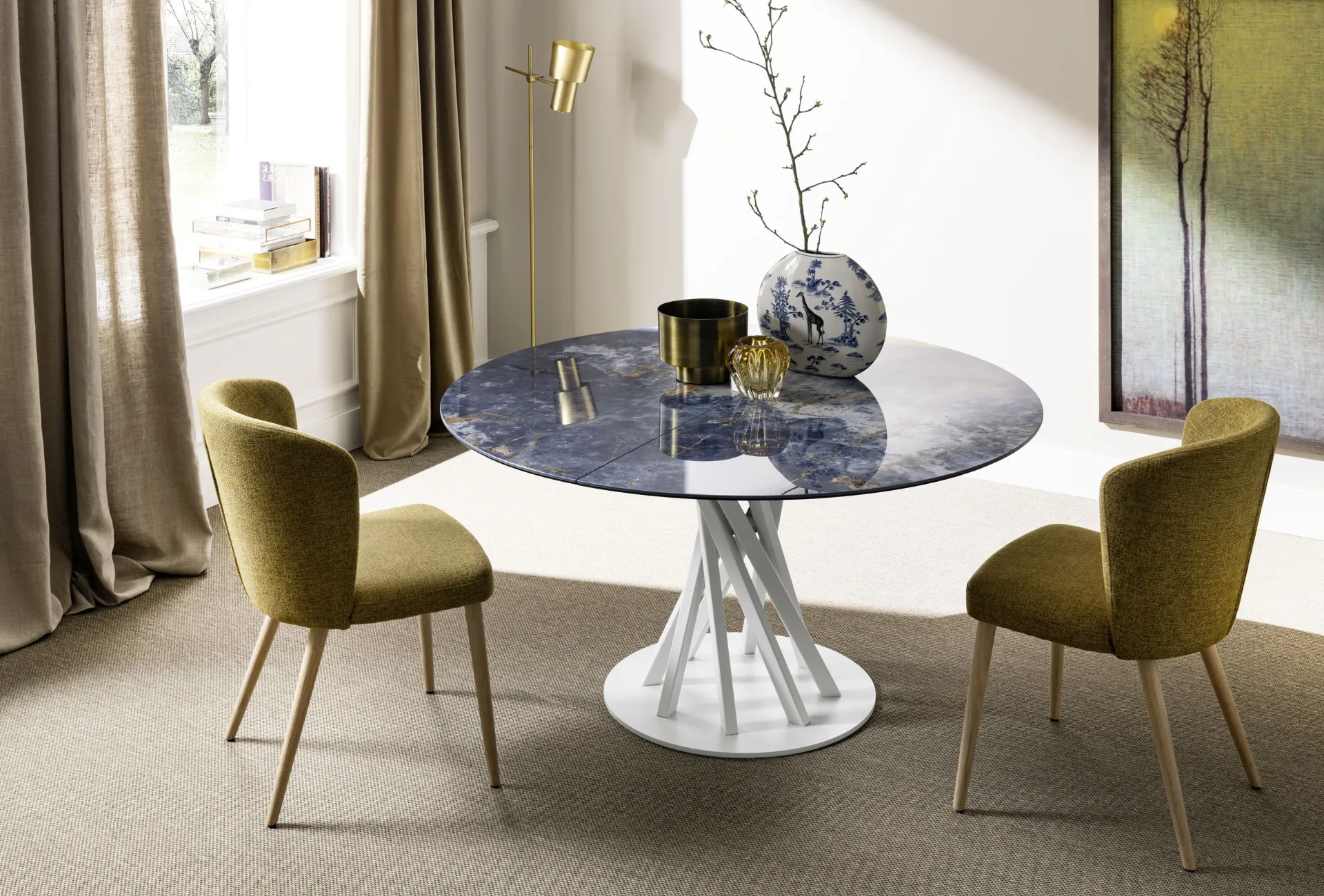Tavolo rotondo Gemini in ceramica di Alta Corte: realizzato in materiali di prima scelta è caratterizzato dalle linee decise del top e da un basamento elegante e raffinato. Ideali per dare vita a degli abbinamenti unici con sedie e complementi design, i Tavoli allungabili della marca sono soluzioni tra le più belle in commercio, ideali per il soggiorno e la zona cucina. Se vuoi un tavolo da pranzo di alto contenuto estetico, contattaci e ricevi info e preventivi sul modello visibile in foto. Un modello come quello nell'immagine, in abbinamento alle giuste sedie, saprà valorizzare il look delle stanze domestiche dedicate in assoluto alla socializzazione. Il noto e rinomato brand Alta Corte, leader nella produzione di arredi in ceramica, ha scelto per la sua serie un'ampia gamma di finiture, forme e tonalità.