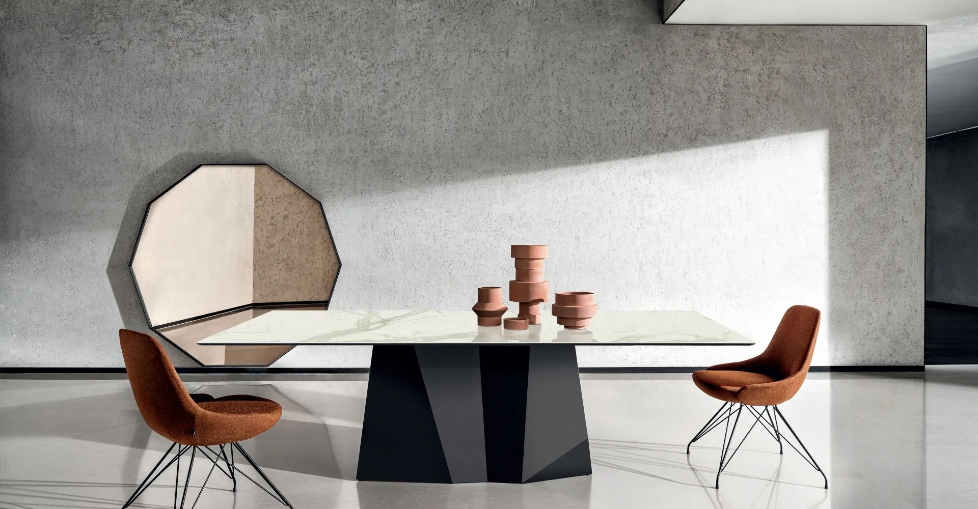 Ideali per dare vita a degli abbinamenti unici con sedute e complementi design, i Tavoli fissi del brand sono soluzioni tra le più belle in commercio, ideali per il soggiorno e la zona cucina. Un modello come quello nella fotografia, in abbinamento alle giuste sedute, saprà impreziosire il look delle stanze domestiche dedicate in assoluto alla convivialità. Tavolo Grandeod di Sovet: realizzato in materiali di qualità è contraddistinto dalle forme decise del top e da un basamento ricercato ed elegante. Se sei alla ricerca di un tavolo da pranzo di alto contenuto estetico, contattaci e ricevi informazioni e preventivi sul modello mostrato in foto. Il noto e rinomato brand Sovet, specialista nella realizzazione di arredi in ceramica, ha scelto per la sua linea una vasta gamma di materiali, linee e cromie.