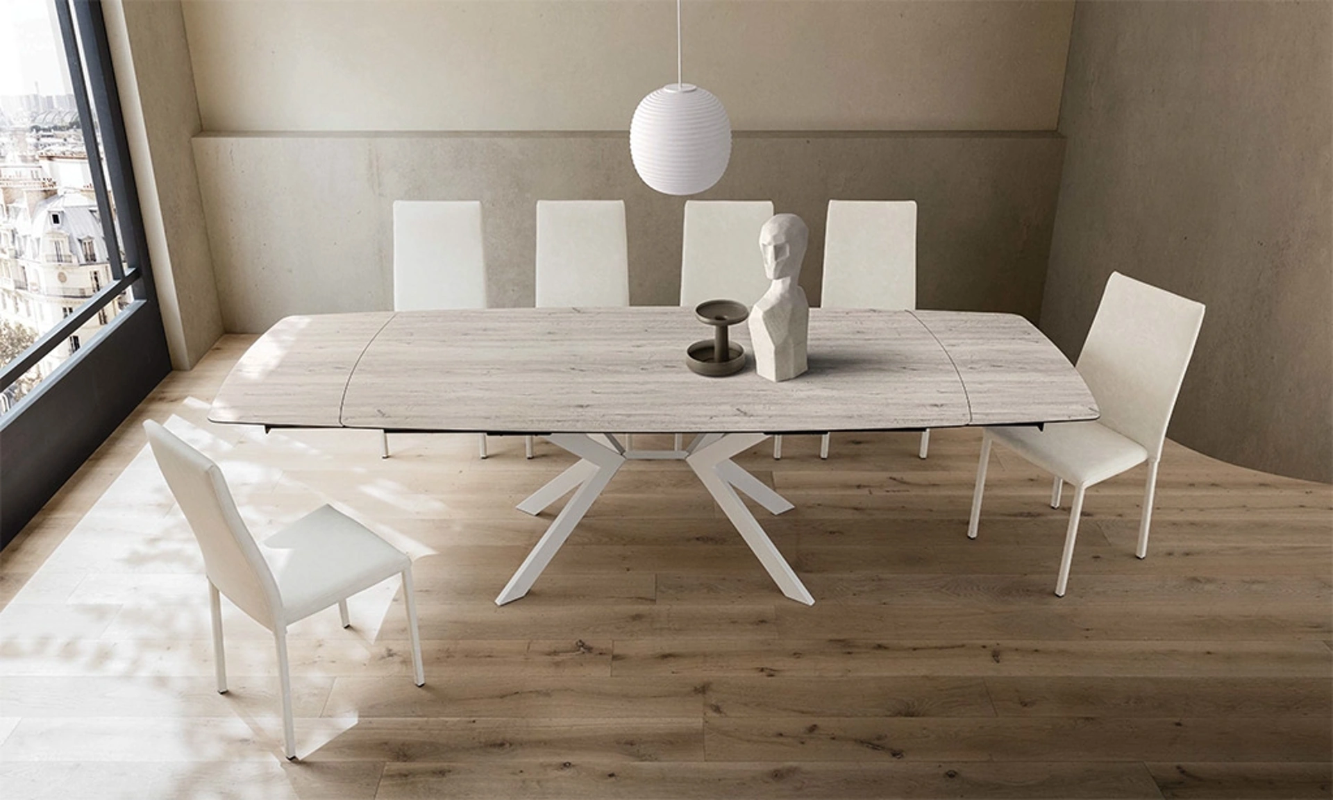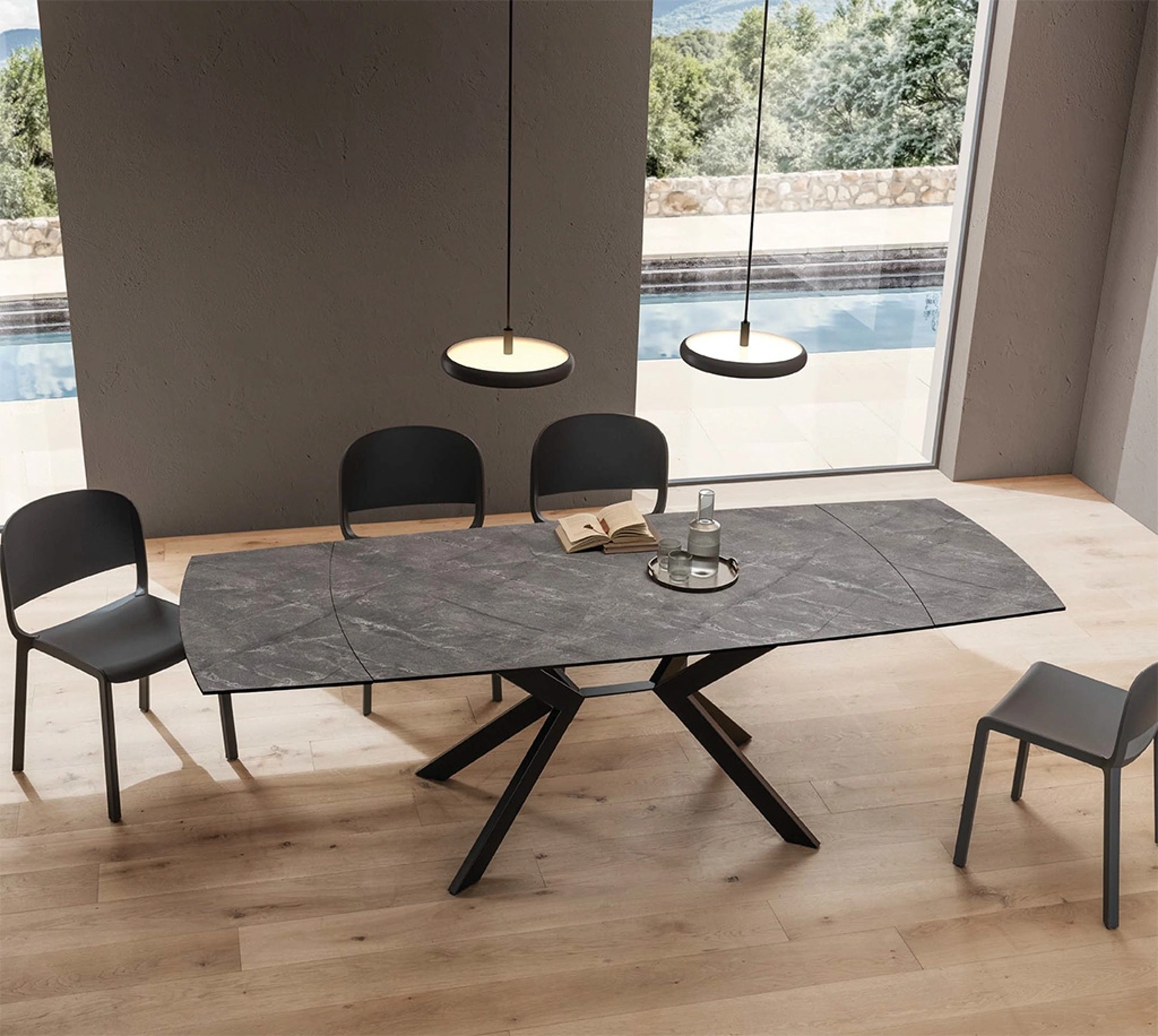 Se cerchi tavoli allungabili moderni, ecco a te il modello da pranzo in gres Karim della marca La Primavera.
