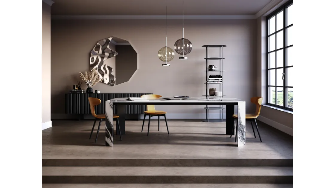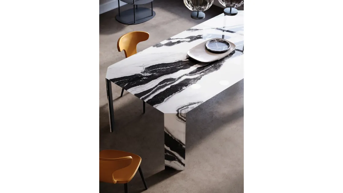 Se vuoi tavoli fissi design, ti presentiamo il modello da pranzo in vetro Panta Rei del marchio Tonin Casa.