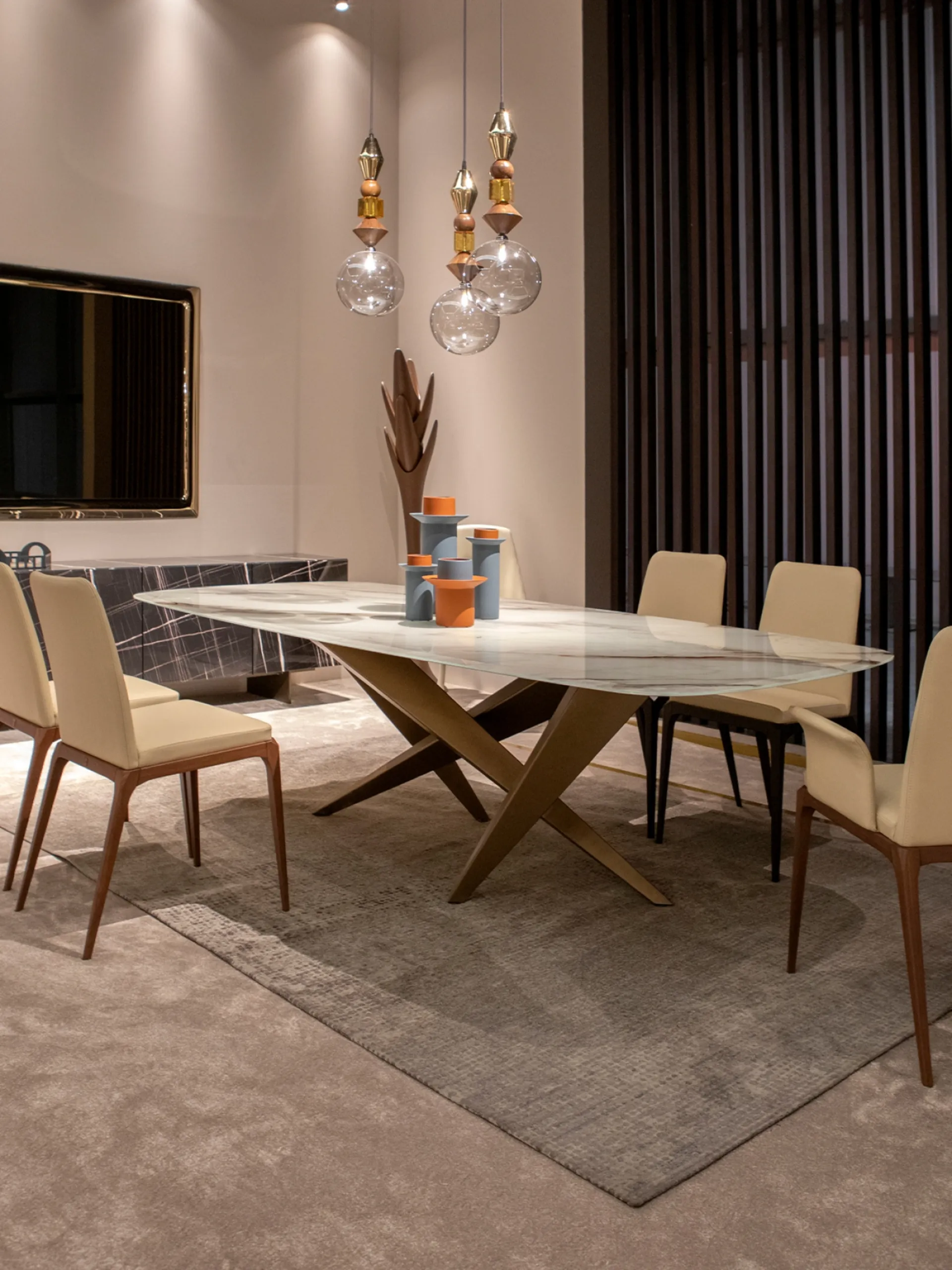 Se cerchi tavoli design da pranzo, scopri i modelli fissi di Tonin Casa: clicca e scopri il modello Thunder in vetro.