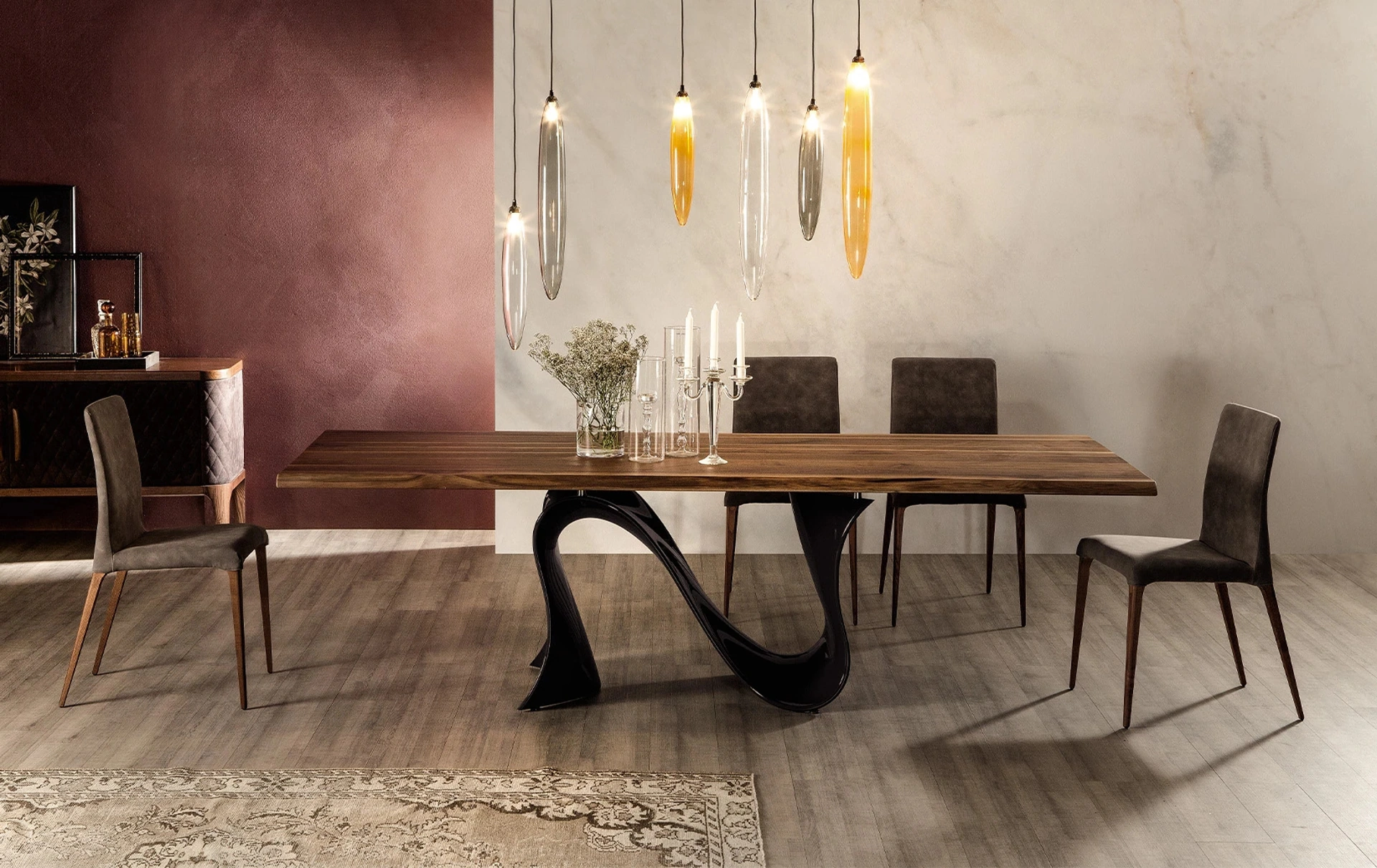 Se vuoi tavoli design da pranzo, scopri i modelli fissi di Tonin Casa: clicca e scopri il modello Wave in legno.