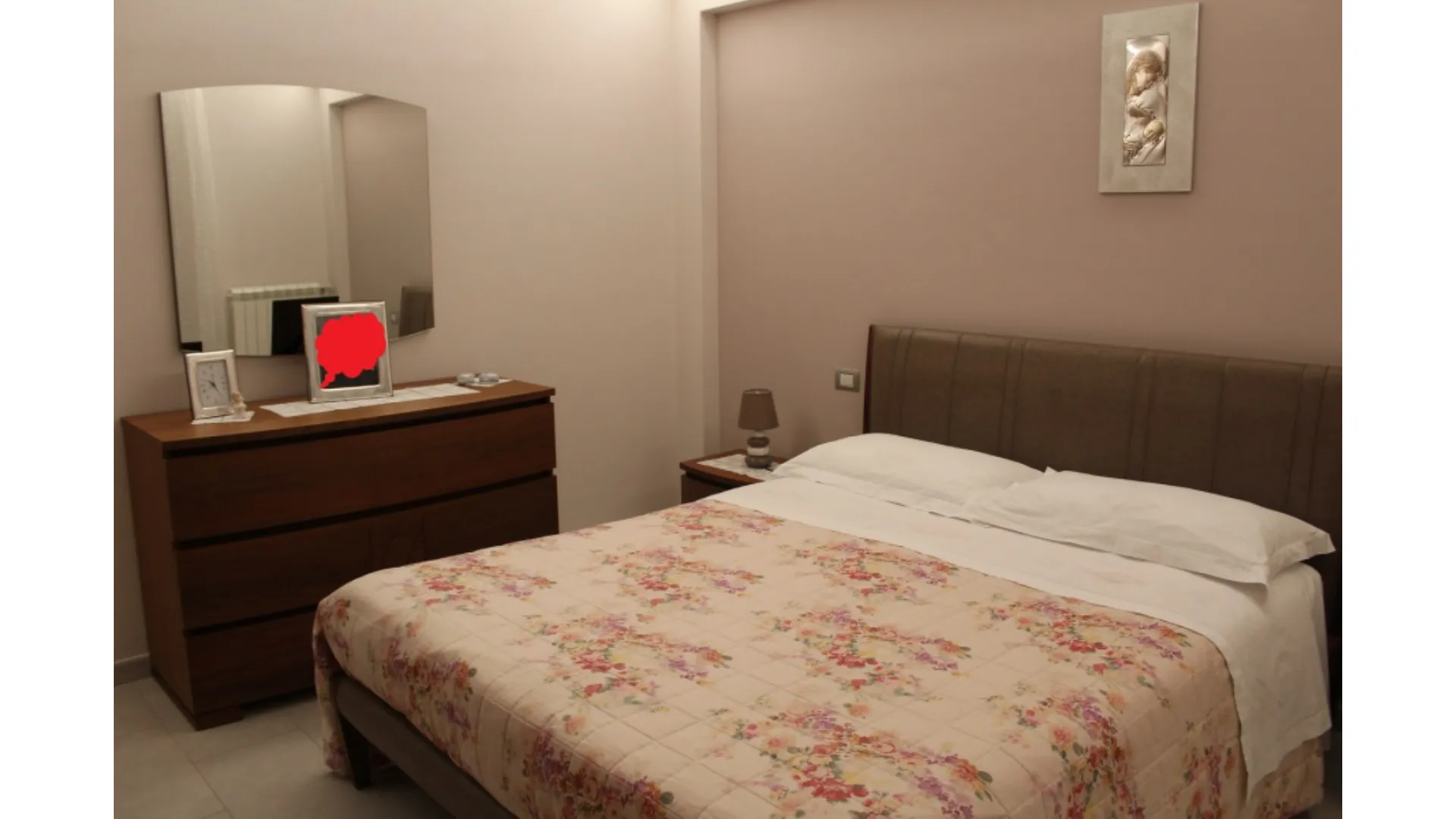 Camera da letto matrimoniale con comò, comodini, letto e armadio.
