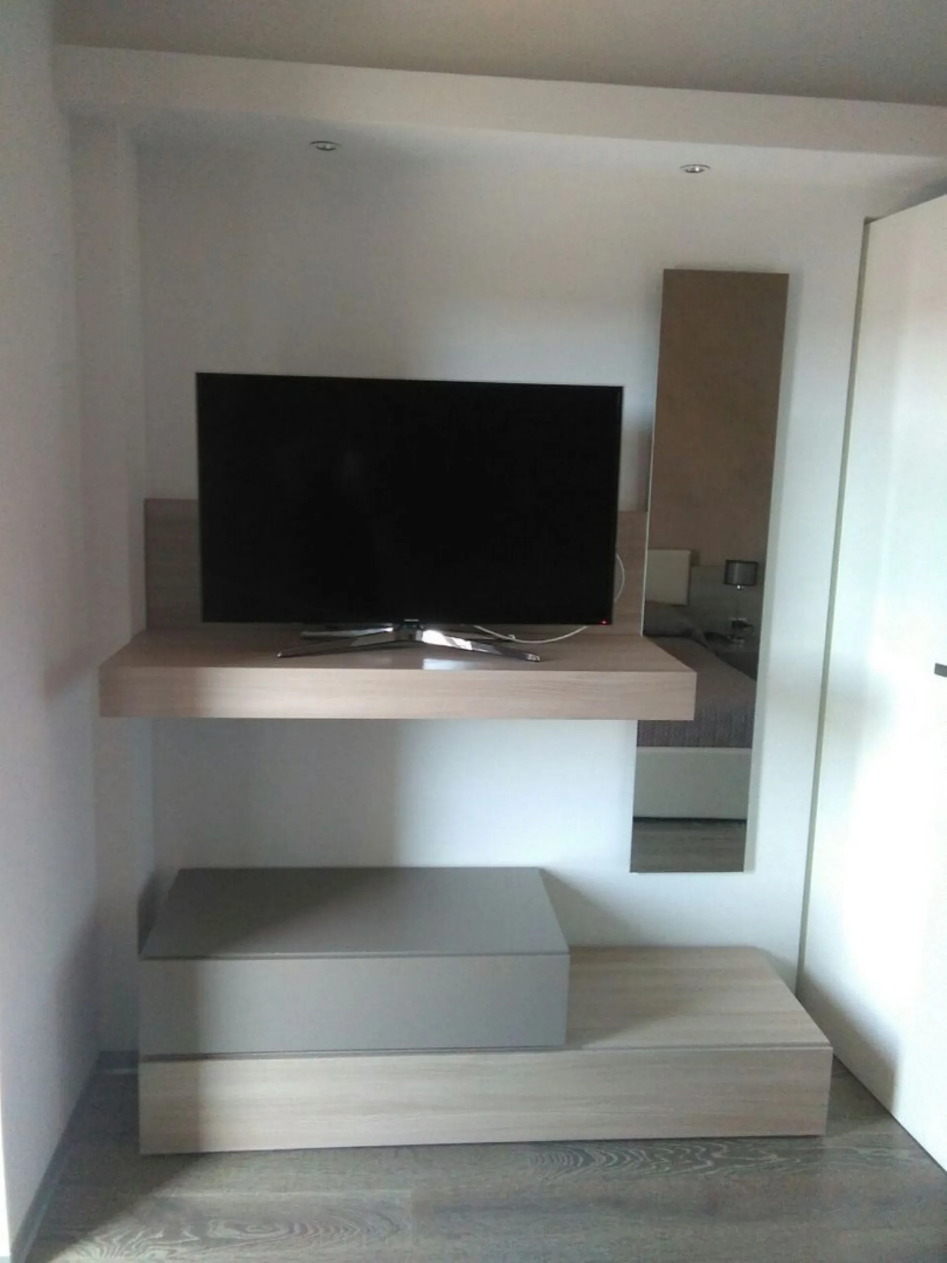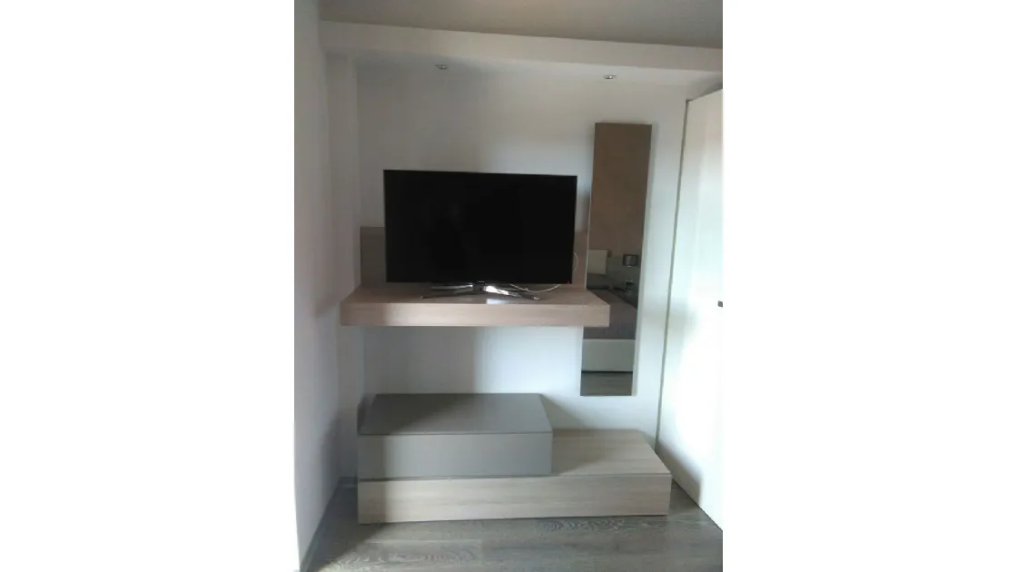 Camera moderna con mensola porta tv.