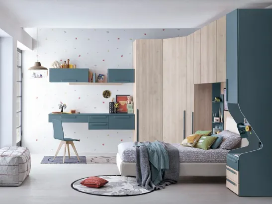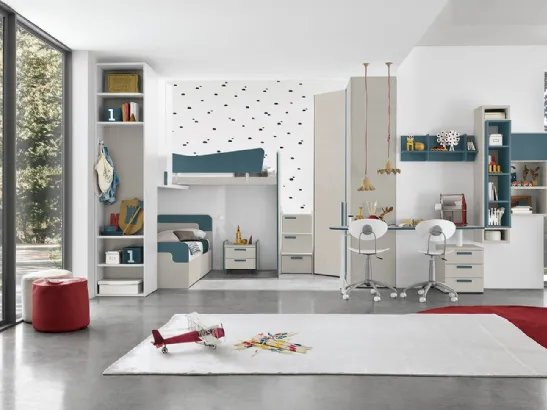 Camerette componibili per ragazzi: scopri il modello in melaminico Golf Y22 di Colombini Casa per stanzette moderne.