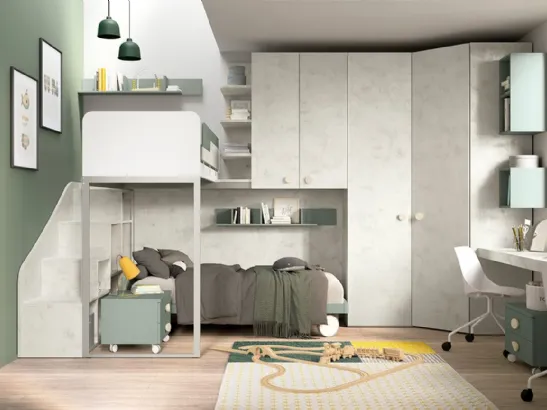 Con questa cameretta Golf K51 Colombini Casa, tra le soluzioni a soppalco, potrai allestire stanze moderne per bambini.