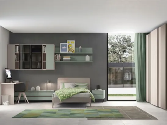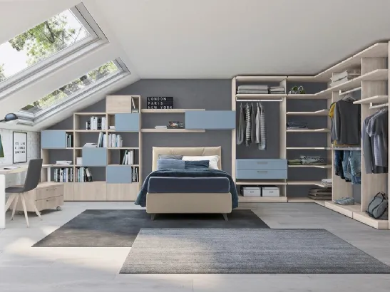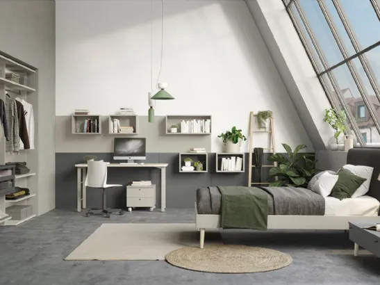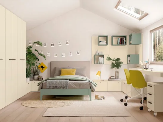 Con questa cameretta Golf Y25 Colombini Casa, tra le soluzioni componibili, potrai allestire stanze moderne per ragazzi.