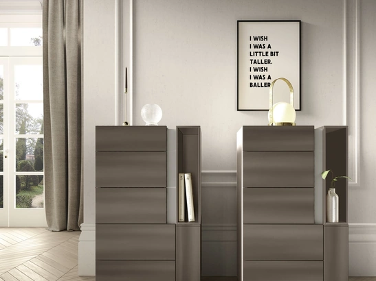 Scopri Comodini design e mobili con cassetti Adriatica! Il modello Gruppo Notte Kursaal realizzato in laccato lucido è la soluzione ottimale.