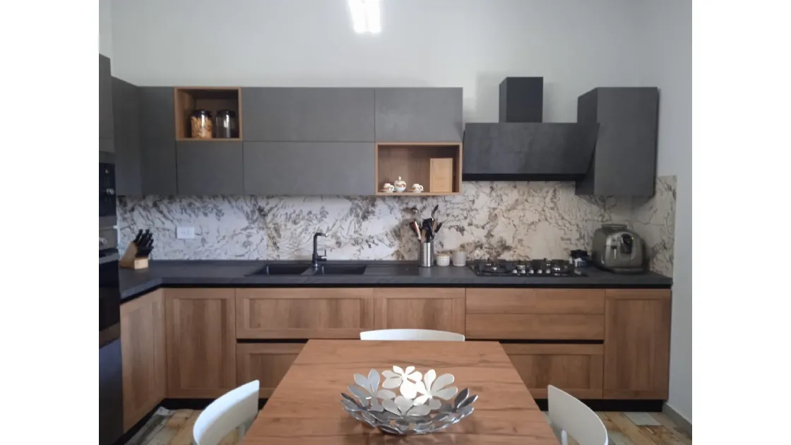 Cucina componibile Scavolini con colonna per frigo incassato da 75 e colonna per forno e microonde
