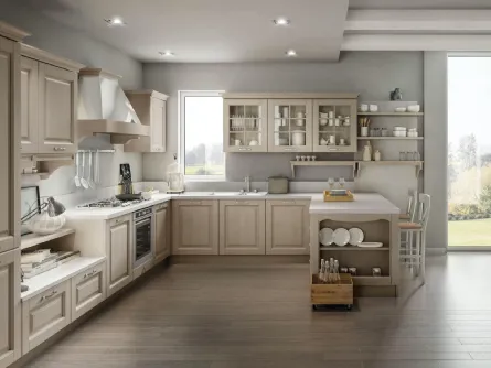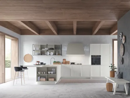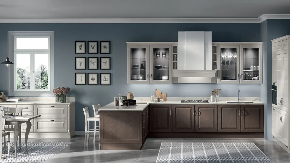 Cucine con penisola Scavolini: entra e scopri un mondo di stile e design! La cucina classica Baltimora in Frassino Havana ti sta aspettando.