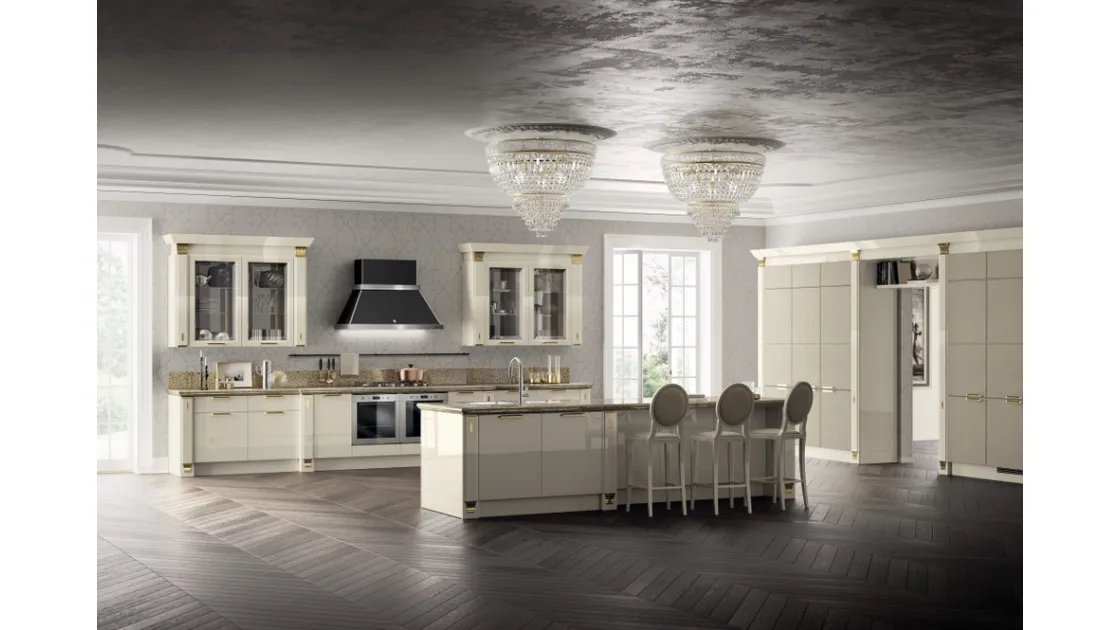 Vuoi rinnovare la vecchia cucina? Clicca e scopri un ricco catalogo di soluzioni tradizionali con isola: Exclusiva in Laccato lucido Panna Porcellana ti aspetta!