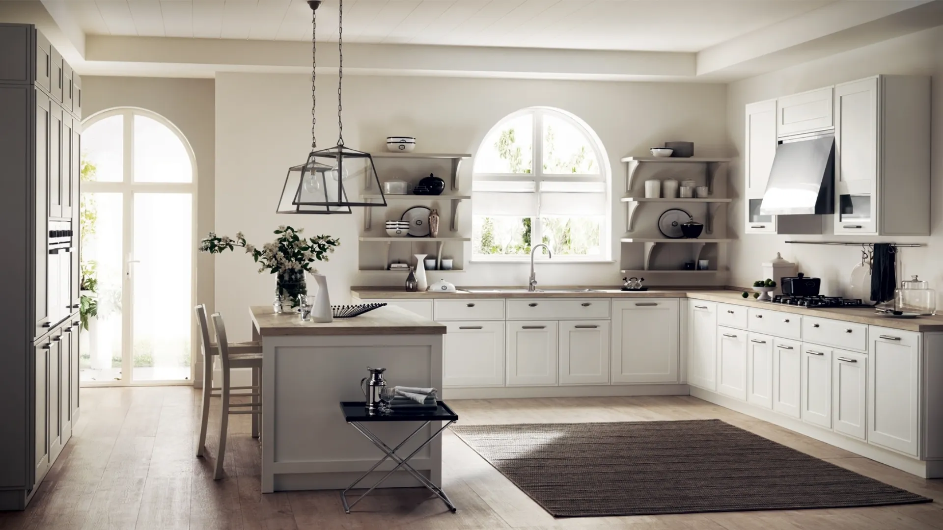 Scegli la cucina Favilla 05 Bianco Prestige: le soluzioni classiche Scavolini in laccato opaco sono sinonimo di qualità, design e contenuto estetico.
