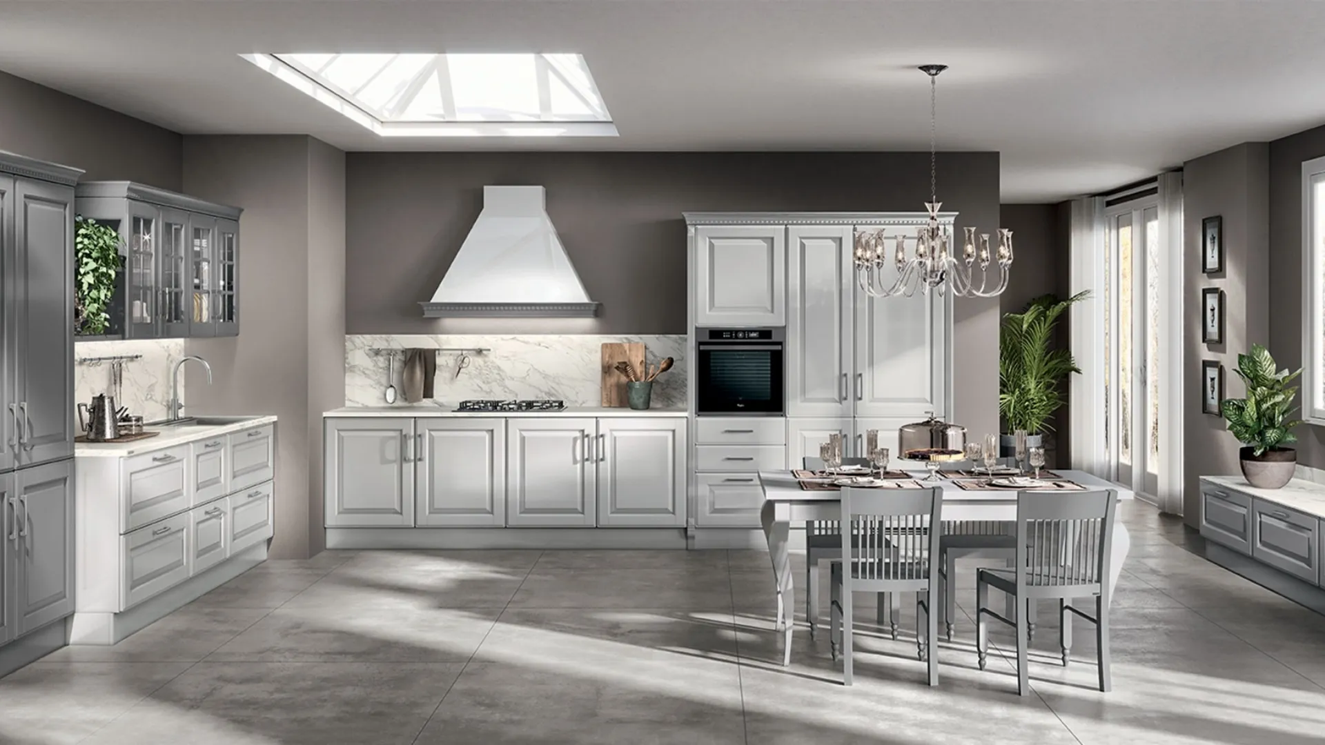 Se vuoi una cucina classica, clicca e ottieni informazioni sul modello Baltimora Grigio Airone Scavolini.