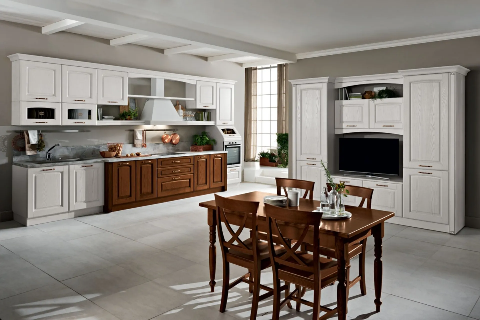 Se desideri una cucina convenzionale, clicca e scopri di più sul modello Borgo Bianco e Noce Spar.