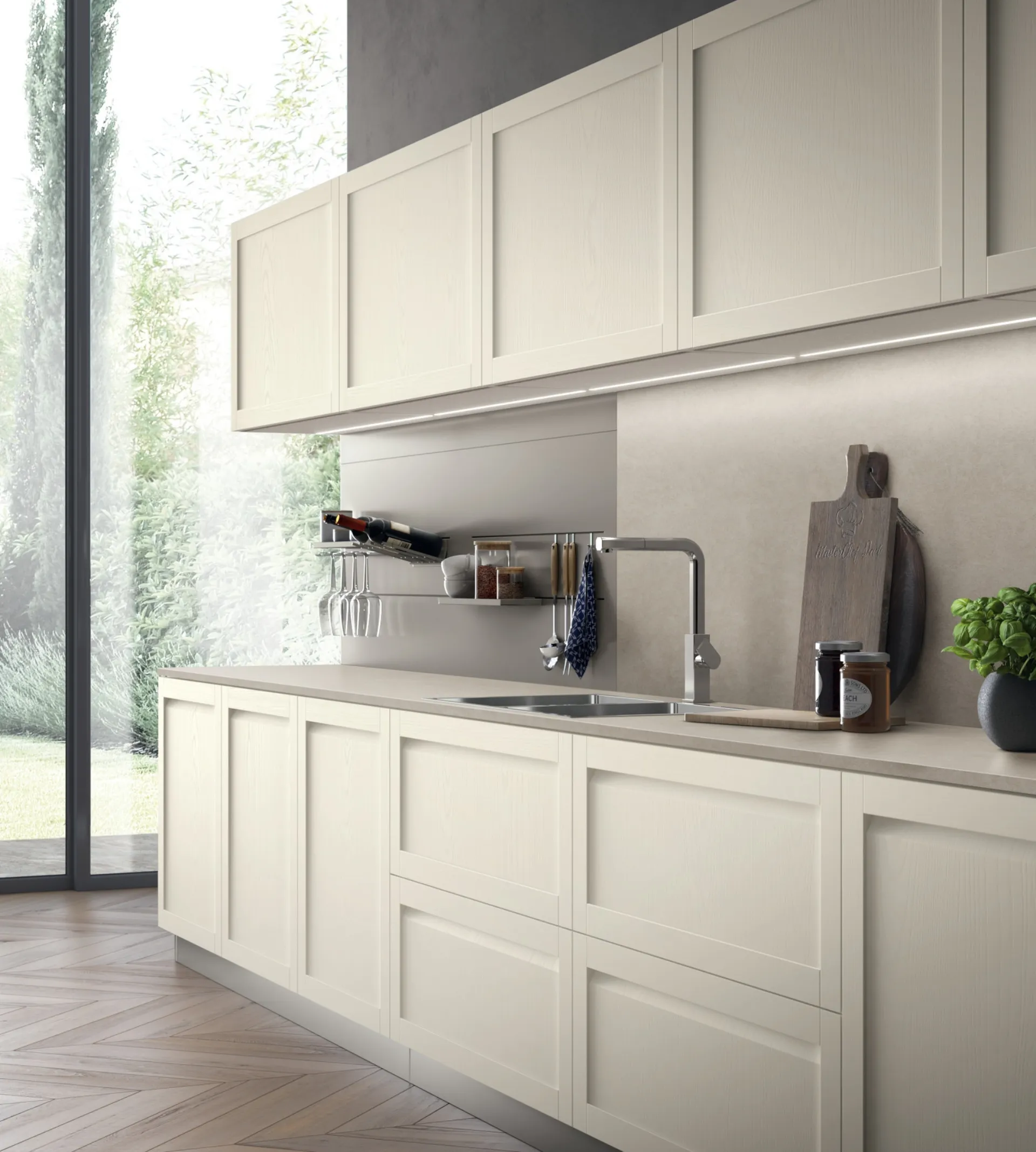 Clicca e scopri un universo di Cucine Moderne in linea: la cucina Carattere Frassino Cotone Scavolini in legno ti sta aspettando!