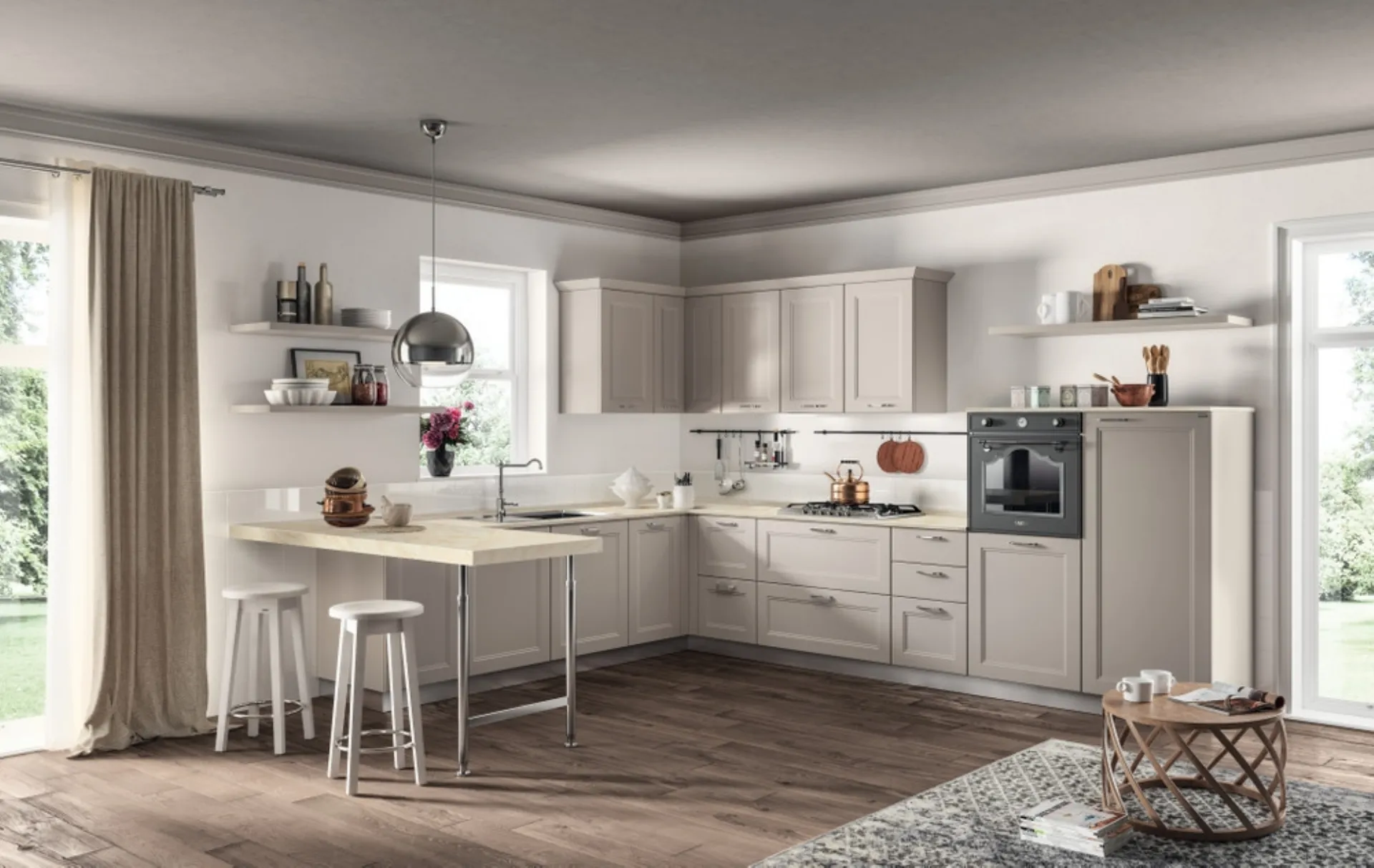 Se cerchi una cucina moderna, ottieni informazioni sul modello Colony laccato opaco Sabbia Scavolini.
