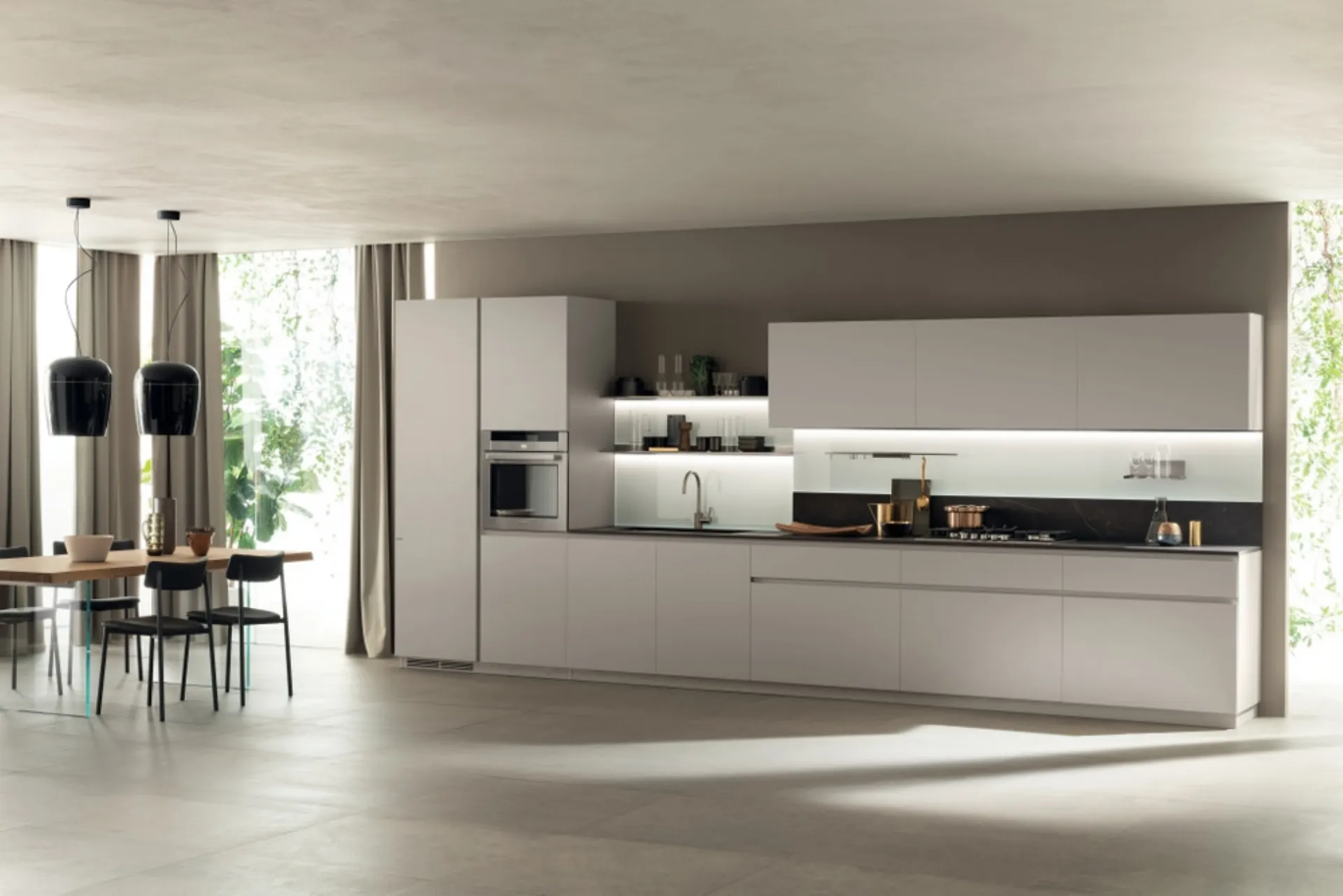 Se desideri una cucina moderna Scavolini, DeLinea in laccato Grigio Chiaro in laccato opaco ti attende nel nostro negozio di Cucine Moderne in linea.