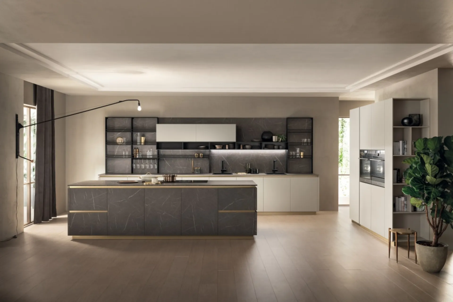 Scopri di più sulla cucina DeLinea in Pietra Grey e Grigio Chiaro opaco di Scavolini: questa soluzione in laminato sarà la scelta ideale per te!