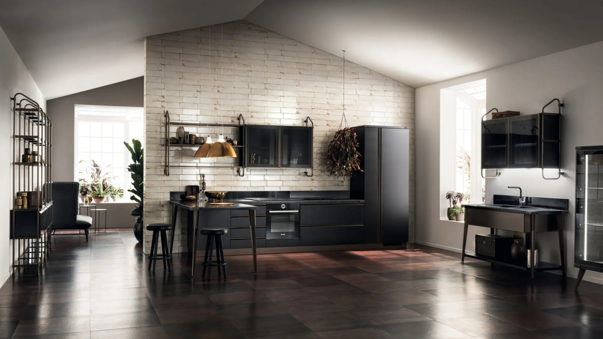 Se desideri una cucina moderna Scavolini, Diesel Open Workshop con Top in Corial Gravel in laccato opaco ti attende nel nostro negozio di Cucine Moderne con penisola.