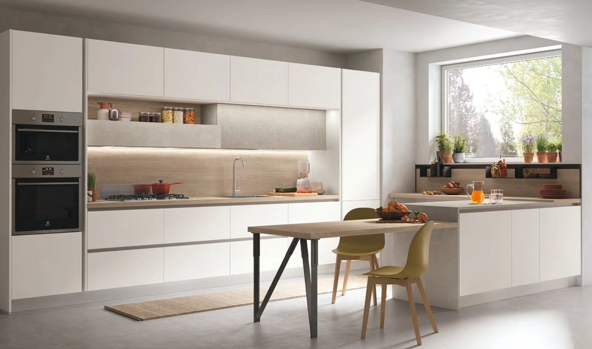 Ti attendono varie proposte moderne con penisola per la zona cucina, ideali per chi cerca uno spazio familiare, semplice e immediato ma moderno nello stile. Quando scegli una cucina moderna devi dare priorità al modo in cui vivi i tuoi spazi, per progettare alla perfezione la tua composizione d’arredo. A rendere la Cucina Moderna Young Modern 08 di Stosa una tra le più originali soluzioni della marca, oltre ai suoi bellissimi dettagli, è il materiale: è realizzata in laminato per assicurare comfort e durevolezza negli anni.