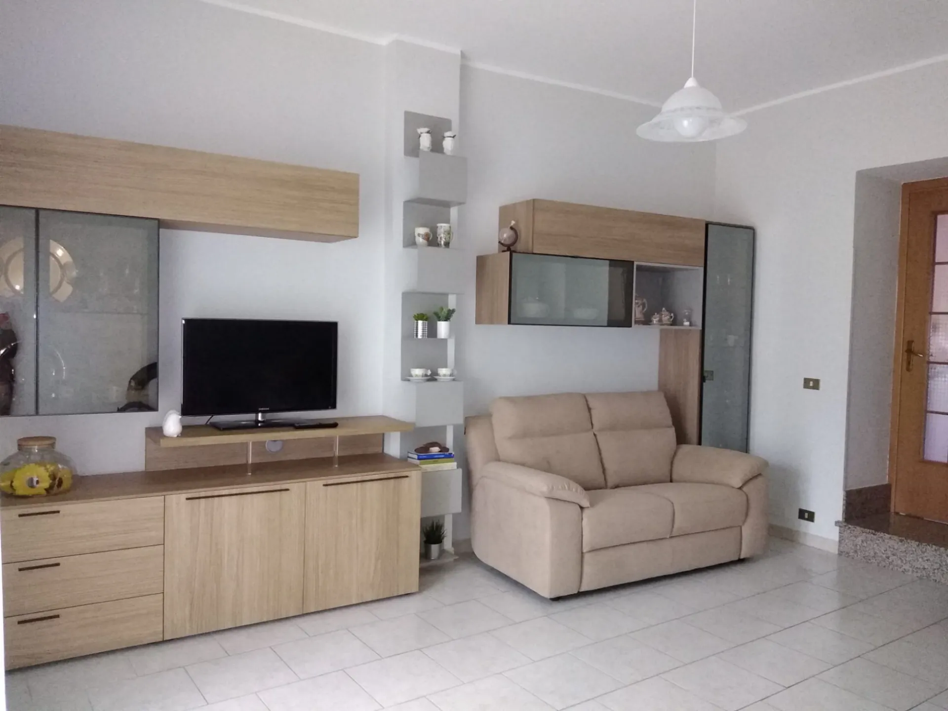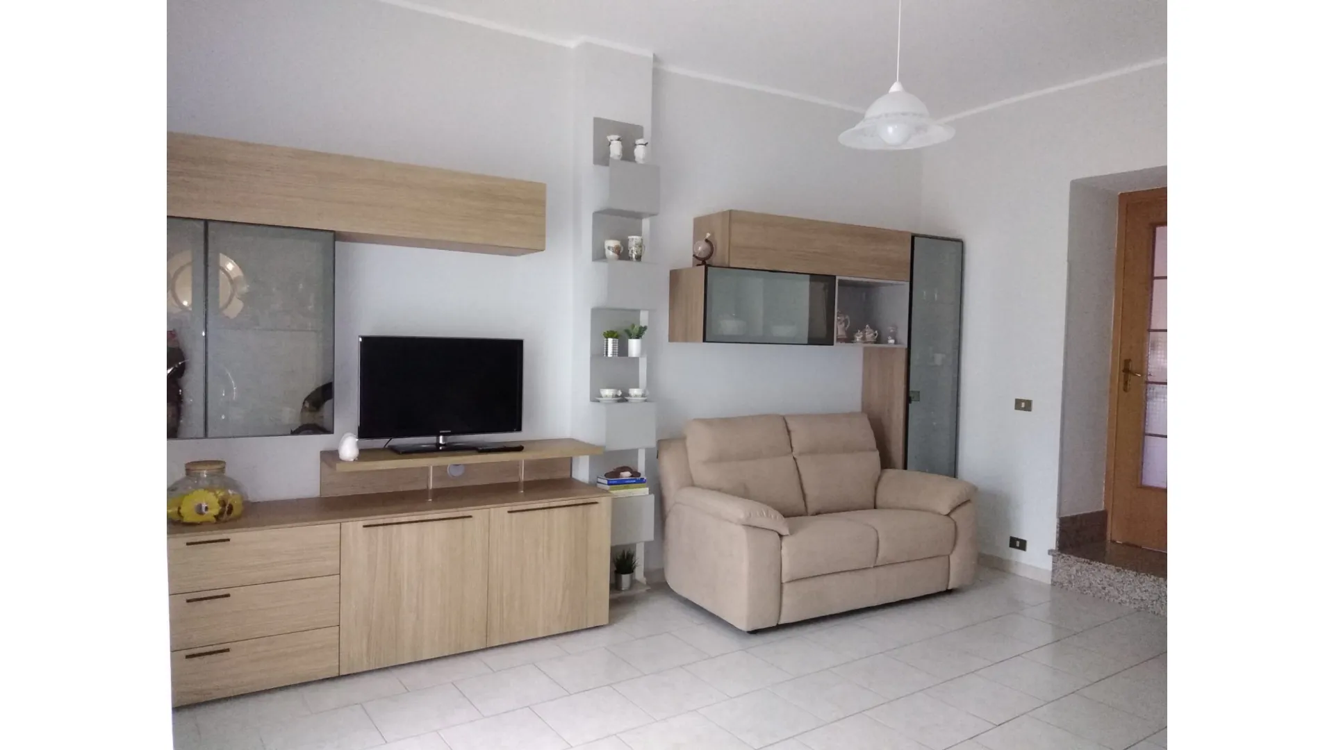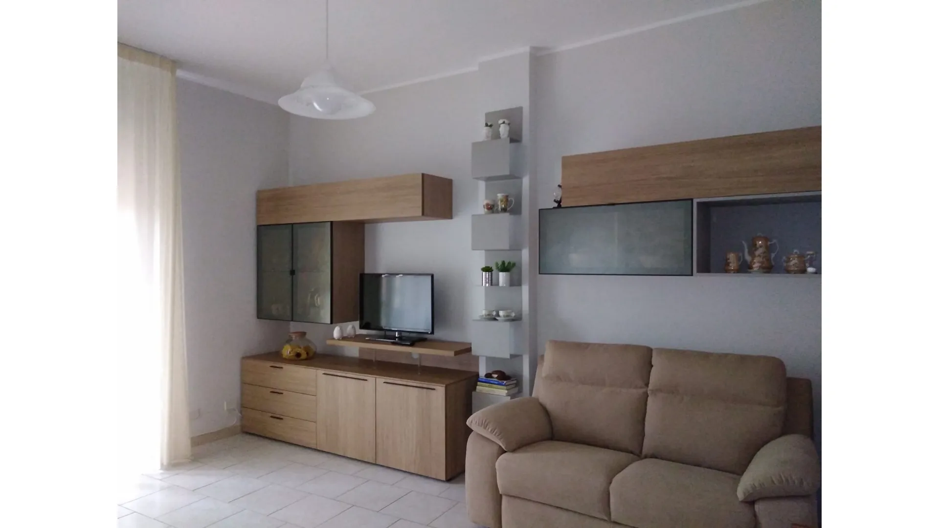 Zona giorno della ditta SantaLucia mobili, studiata a misura con elementi molto funzionali e vetrinette nei punti giusti. La libreria in metallo copre il pilastro rendendolo elegante a completare un divano della ditta Nicoletti, in tessuto, dalle linee morbide.